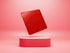 Red tinted acrylic with fine glitter scattered throughout.