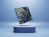 Multi-shaped gold, purple, black, teal snowflakes encased in clear acrylic.